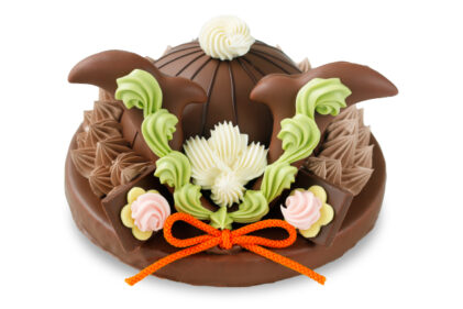 ココアスポンジにチョコバタークリームをサンドし、全体をミルクチョコでコーティングしています。