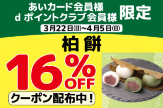 あいカード会員様・dポイントクラブ会員様限定 柏餅16%OFFクーポン配布中!