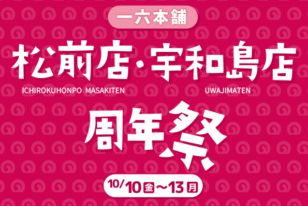 「一六本舗 松前店」・「一六本舗 宇和島店」にて2025年10月10日(金)から10月13日(月)まで★周年祭★開催!