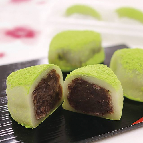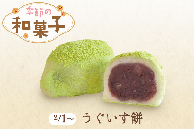 白餡を練り込んだ口どけの良いお餅で小倉餡を包み、うぐいす粉をまぶして仕上げました。