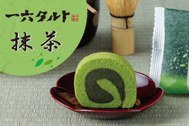 4月1日(水)より、「一六タルト抹茶」を販売いたします。 抹茶の風味豊かな生地で、抹茶餡を巻き上げました。 抹茶の深い味わいをお楽しみください。