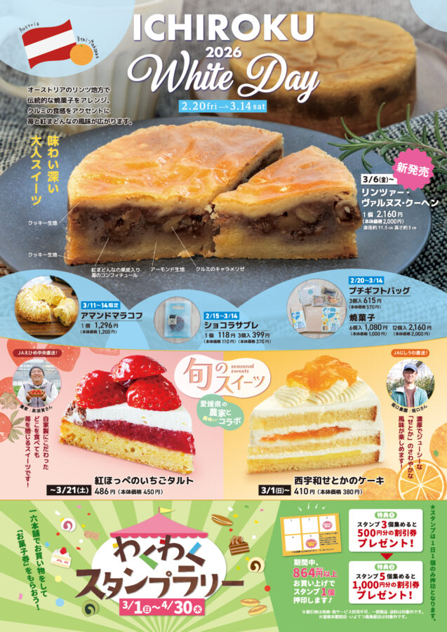 一六本舗 砥部店・リバーサイド店★周年祭・誕生祭★3月1日(日)から3月4日(水)まで開催!