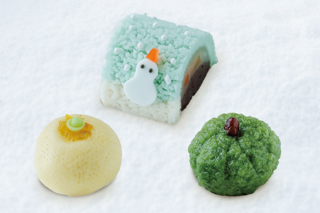 冬至の時期に食べることで運気の上がるとされる冬の七草を使用した和菓子です。