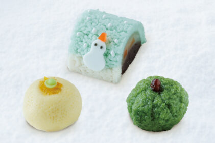 人参と金柑の蜜漬け入り羊羹と村雨が合わさった可愛らしい一品です。