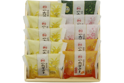 【内容】:ひと切れ一六タルト柚子5個、宇治抹茶1個、伊予柑2個、桜2個