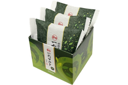 餡のまろやかな甘みに抹茶のほのかな苦みと香りが広がる一六タルトです。