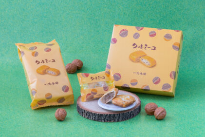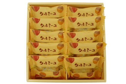 自家製のクルミ餡をパイ生地で包み焼き上げました。しっとり生地とクルミのしっかりとした食感の対比が楽しいお菓子です。 【原材料】 白いんげん豆生餡(国内製造)、砂糖、マーガリン、小麦粉、くるみ、液卵(卵黄、全卵)、麦芽糖、還元水あめ、水あめ、油脂加工食品、食用乳化油脂、はちみつ、ショートニング、食塩/トレハロース、香料、着色料(カロテン)、(一部に乳成分・小麦・くるみ・卵・大豆を含む)