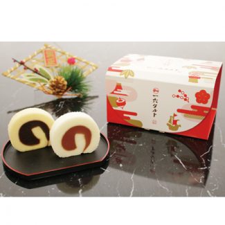 個包装の一六タルトを、お正月仕様の箱に詰め合わせました。