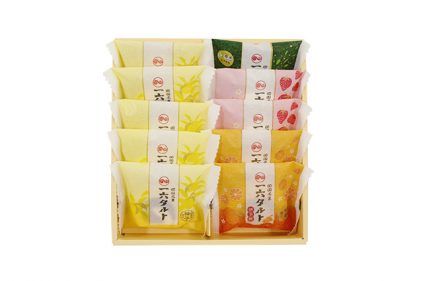 【内容】:ひと切れ一六タルト柚子5個、あまおう苺2個、伊予柑2個、宇治抹茶1個